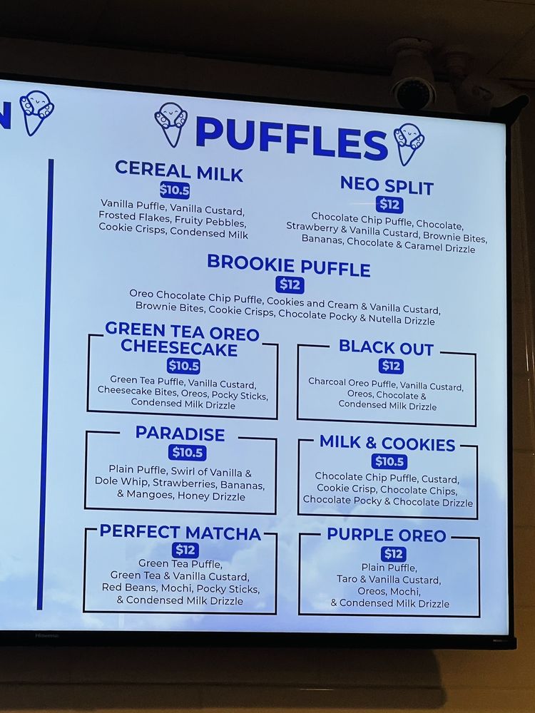 - Puffles: Indulge in options like the creamy Peanut Butter Oreo Cheesecake or the tropical Paradise Plain, each plated with flavors that tantalize the taste buds.